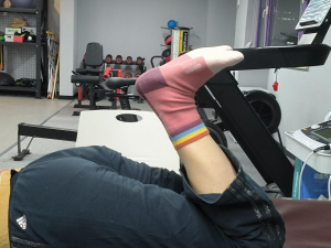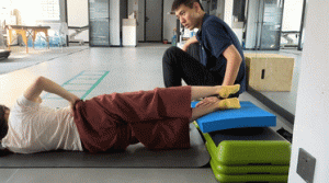 GTS单脚蹲:大多数女生股四头肌较无力在神经肌肉电刺激的辅助下的更能充分的达到股四头肌离心控制的目的