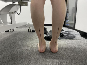 在康复师的细心指导和患者的积极配合下,康复一段时间后,这位患者已经角度恢复到了全角,同时在中期康复评估中发现患者有结构性扁平足的情况,我们为她配试矫正扁平足的鞋垫予以纠正性训练,现在患者已经步态正常,可以回归正常生活了。