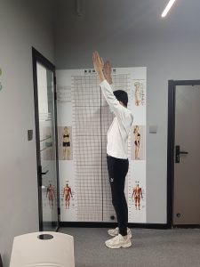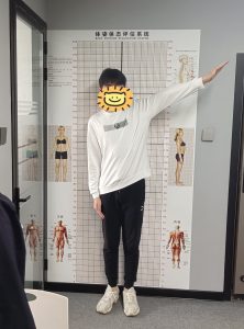 左侧盂肱关节关节囊有明显挛缩,进行手法牵拉,关节松动,在手法康复时感觉肱骨头在关节盂中没有滚动,对肱骨进行被动滚动练习,之后对杨同学进行左肩前屈与外展肌力锻炼。