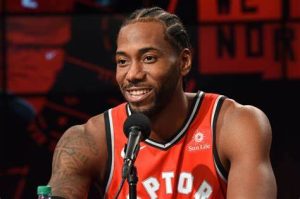 2023-24赛季媒体日,快船球员卡瓦伊-莱昂纳德接受采访。