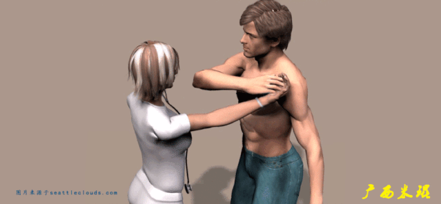 (12)Bear hug test: 也称为熊拥抱试验 ,患侧手掌搭在对侧肩上,手指伸直,手掌朝下。检查者抓住患者腕部抬高施加外旋力量,患者用内旋力量对抗。如果力量减弱,手不能维持在肩上,为抱熊试验阳性。提示肩胛下肌损伤。