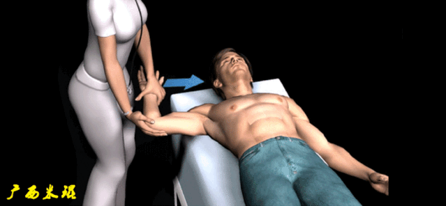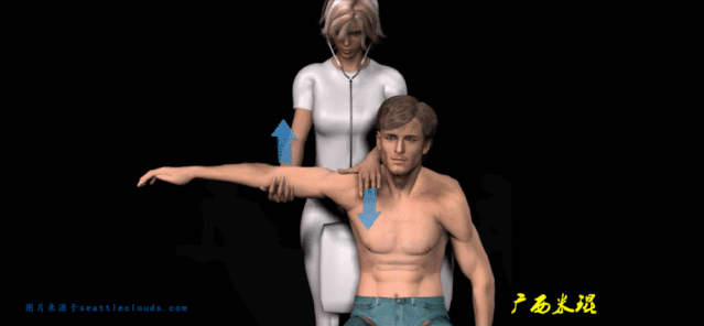 (6)Gagey test: 也称为过度外展试验,检查者一手把持患肢置于90°外展,另一只手制造一个上肢向下的力,诱发出恐惧或抵抗为阳性。