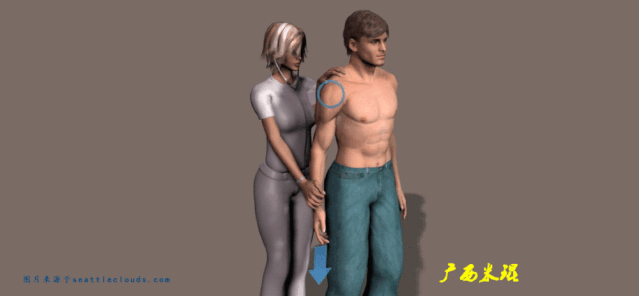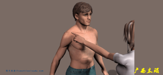寻找肩关节压痛点是触诊的首先步骤,应该熟知肩关节的常见压痛点,了解疼痛的性质,争取获得病人的信任,压痛点主要在 肩峰前下方、肩锁关节、喙突、肱二头肌腱沟 等处。除此之外,应该结合动诊,触摸肩关节活动时有无磨砾感及弹响。