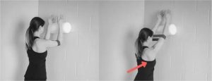 - 吐气时手臂往上滑动滚轴手臂慢慢伸直使肩胛骨向上旋转,吸气手臂向下滑动回到原位使肩胛骨向下转动,重复2~4组,每次10~15次。