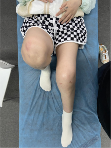 小颖是一位膝关节S后的朋友,在十几年前她的膝关节中扎入了一根牙签而未被发现,后因膝关节长期的疼T问题,检查发现关节内的牙签,需要做手S才可以摘除。5月24日Shu后于4周后,初到店时,仍存在Z胀、疼T、屈膝角度受限、步态异常的问题。