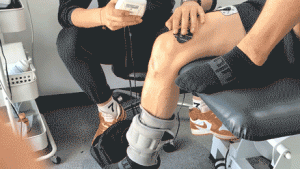 阶段一(预估4周):使用超声波和深层筋膜松解损伤侧去除不适感,动态关节松动方法打开受限的关节,膝关节屈伸膝活动度:提升至屈膝120°,伸膝-5°,步态正常,双脚跳跃