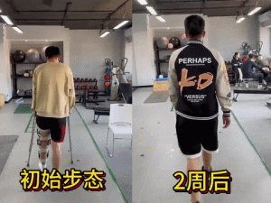 运动:恢复髋、踝关节周围肌肉力量;配合compex及减重器械辅助下进行肌力训练,提高整体肌肉力量及稳定性