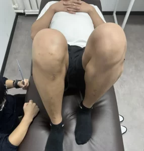 4、屈膝角度受限,屈膝主动125°(主动勾腿时取腱位置不适);伸膝稍受限