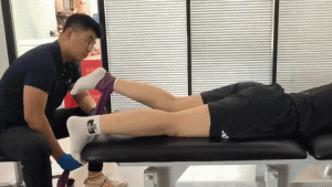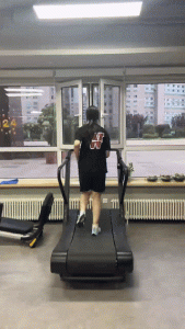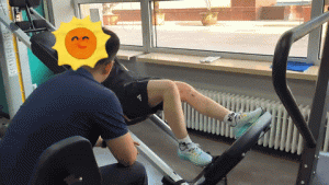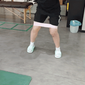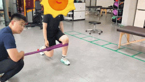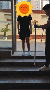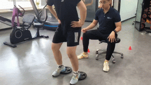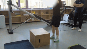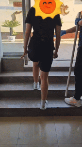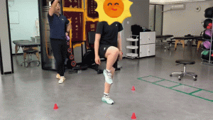 上下楼梯-由于小姐姐重建后进行了一定的康复,激活了股四头肌,做了股四头肌的募集,找到了正确的发力顺序,同时激活了髋关节周围肌肉,并且增强了肌肉力量。这边根据小姐姐的情况在重建后4周进行了上楼梯练习