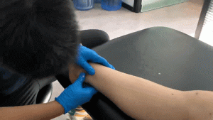 3、左膝髌骨活动度受限:左右:2/6;上下:1/6