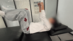 ● 评估结果:颈前伸,右侧肩膀高,双侧肩内扣,双侧翼状肩胛,Adam实验阳性(胸椎右侧高),骨盆轻度前移,右侧骨盆高,右侧骨盆旋前,双膝内扣,双侧轻度扁平足。