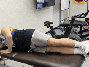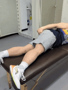 6、肌肉力量测试:90°-90°四头肌:左:3/5、右:5/5;腘绳肌:左:2/5、右:4+/5;臀中肌:左3/5、右4/5