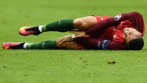 2014年6月18日,葡萄牙队球员克里斯蒂亚诺·罗纳尔多在训练中膝部感到不适,并接受队医康复。