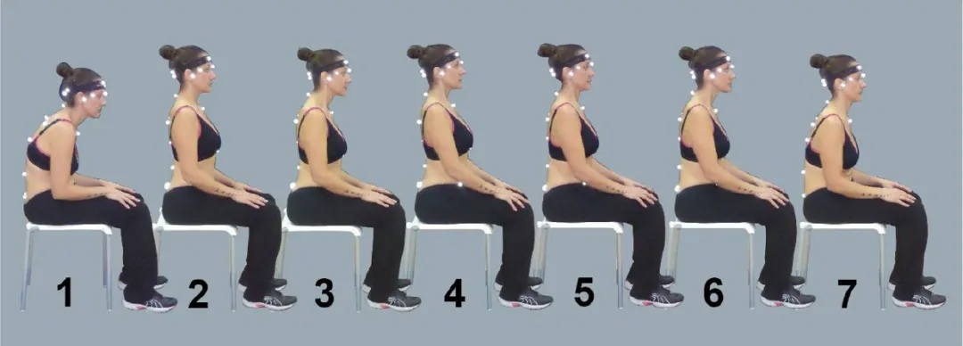 让我们先来做个测试,这张图片出自一项“物理治疗师对最佳坐姿和站立姿势的认知”的研究。你认为正确的坐姿是几号?