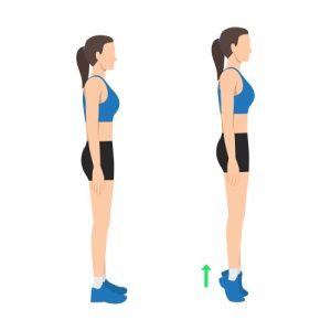 站立位,脚尖向前,双脚分开,与肩同宽;双脚踮起脚尖,足底发力,以前足为负重点,下肢肌肉用力保持静止,保持10秒后放下。做20次。